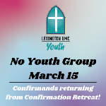 Todd and the confirmands will be returning from the Confirmation retreat on this day, so no youth group meeting on Sunday, March 15!
